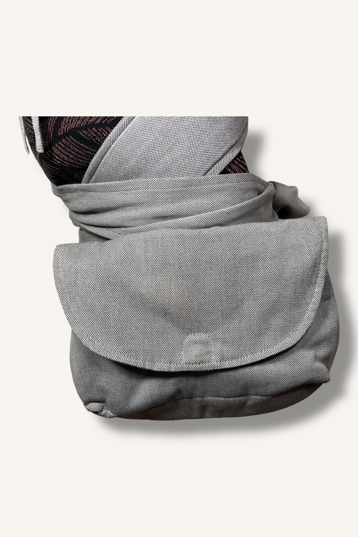 Die Lieblingstrage für dich und dein Baby – bequem, weich, langlebig. Dazu eine passende Tasche, die du direkt am Hüftgurt befestigen oder als Umhängetasche tragen kannst. Alles Wichtige sofort griffbereit: Schlüssel, Handy, Schnuller – ohne zu kramen, ohne extra Tasche.