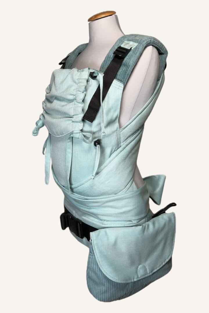 ❗️Bitte beachte. Das Ozeankind ist aus einfarbig türkisem Tragetuchstoff genäht, nicht wie auf manchen Bildern mit Muster, das dient nur der Veranschaulichung.
