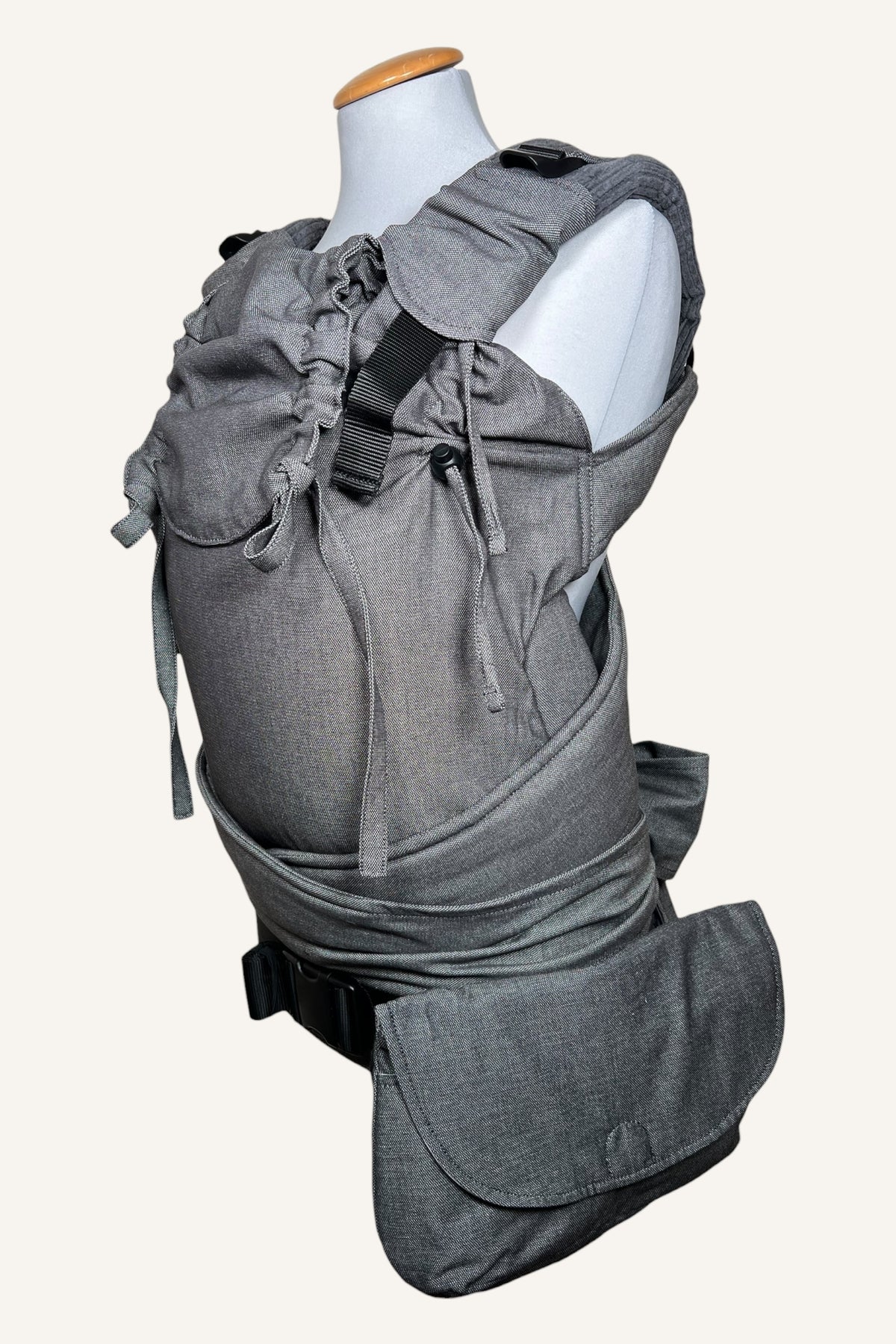 Die Lieblingstrage für dich und dein Baby – bequem, weich, langlebig. Dazu eine passende Tasche, die du direkt am Hüftgurt befestigen oder als Umhängetasche tragen kannst. Alles Wichtige sofort griffbereit: Schlüssel, Handy, Schnuller – ohne zu kramen, ohne extra Tasche.