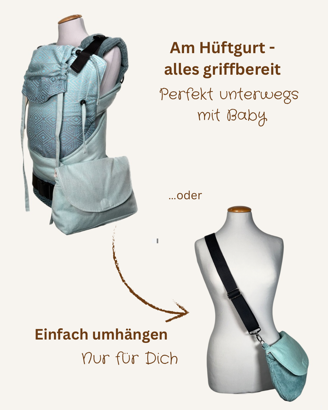 ✔ Befestigung am Hüftgurt – kein verrutschender Taschengurt, der dein Baby stört